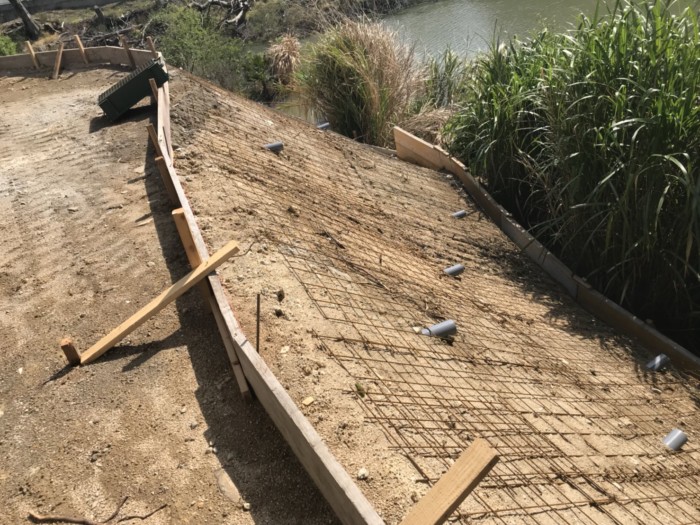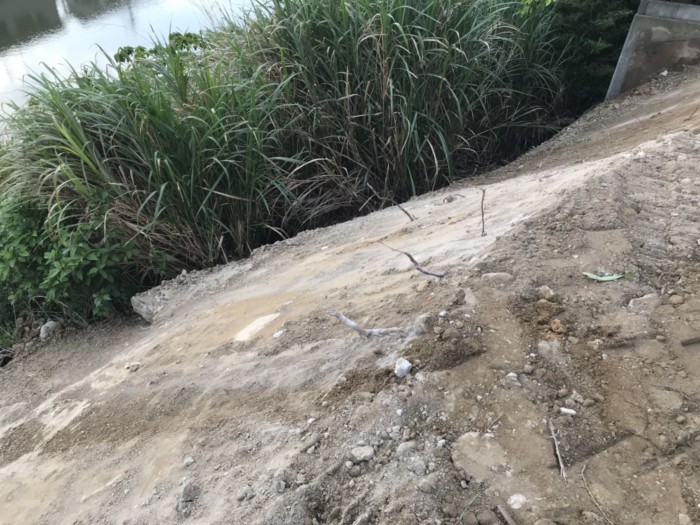 護岸は川岸や海岸に堤防を築くこと、擁壁は高低差のある隣合った道路の側面に壁を築くことです。